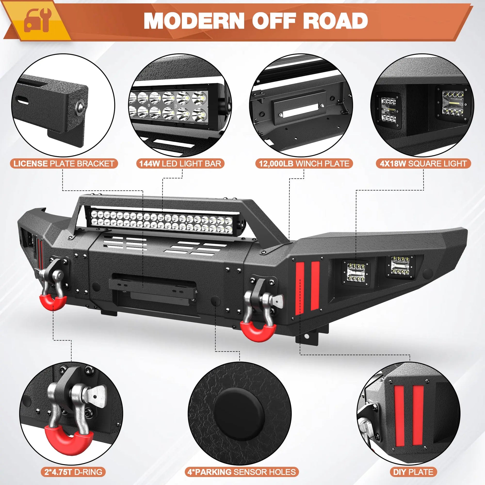 - Review features like winch compatibility, fog light mounts, and integrated lighting.